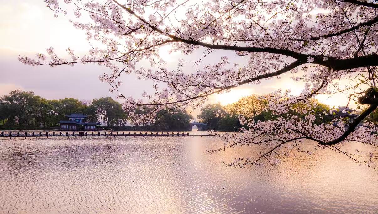 告别市井街巷的熙攘 与几位相契的挚友 流连于曲院风荷的芳径 让满枝樱花化作温柔的信笺 静候一场不期而遇的欢喜