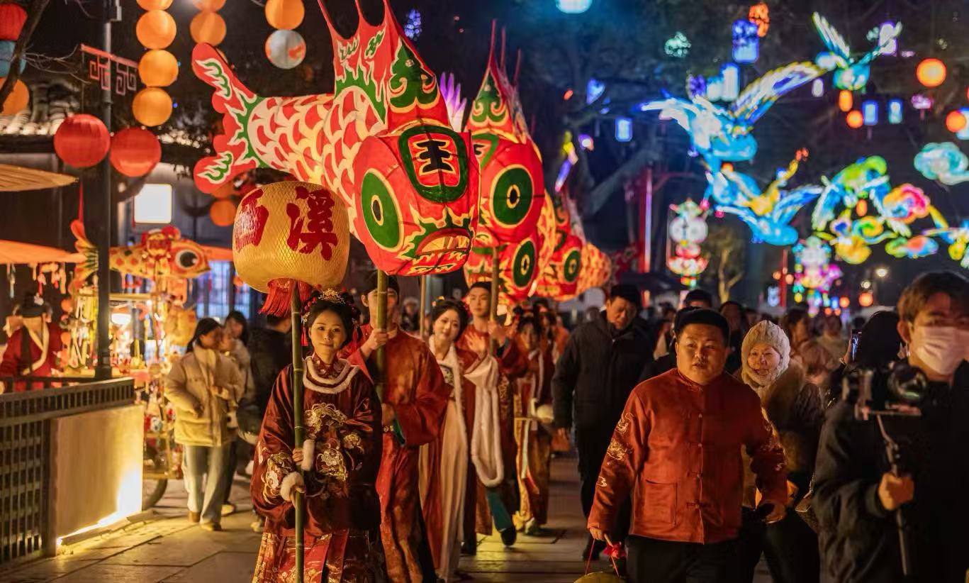 烟火市集寻趣|承包吃喝玩乐 北门、蒋村慢生活街区的新春好市集,藏着最浓的烟火气。非遗手作、特色小吃、古风饰品一应俱全,打年糕、做糖葫芦的摊位热气腾腾,评书表演、乐器演奏轮番登场,逛市集、尝年味、赏花灯,一站式解锁新春美好,大人小孩都能找到属于自己的乐趣。 一盏花灯,映一段江南佳话; 一场灯会,赴一场春日之约。