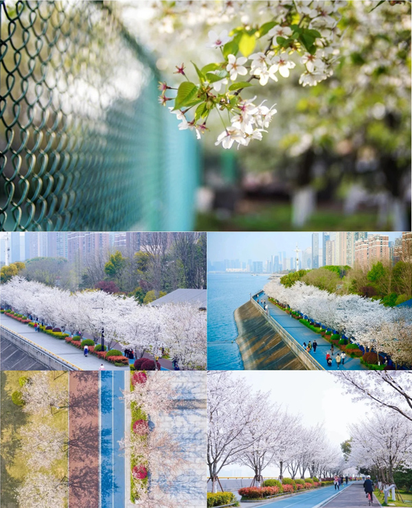 滨江跑道两侧的樱花树开得如火如荼